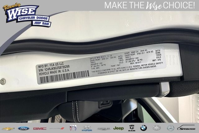 Reasons why YOU should make “The Wise Choice” One of the largest selections of new and pre-owned Chrysler, Dodge, Jeep and Ram vehicles in Genesee County. Voted Best Of Genesee County for New & Pre-Owned Sales, Service and Body Shop Repair. Our customer satisfaction ratings are the highest in the industry. Shop 10 brands at any of our 8 stores conveniently located in Genesee and Oakland County. The Randy Wise team is the #1 supporter of the United Way charity organization out of all the automotive dealer groups in the State of Michigan! 2012 TIME Magazine “Dealer of the year” recipient. Call us at (810) 687-6880 or stop by Randy Wise Chrysler, Dodge, Jeep, Ram at 4239 West Vienna Rd. In Clio, MI to schedule a test drive today! Price includes: $2000 - 2025 National Bonus Cash . Exp. 03/31/2026 $2500 - 2025 National Retail Bonus Cash . Exp. 03/31/2026