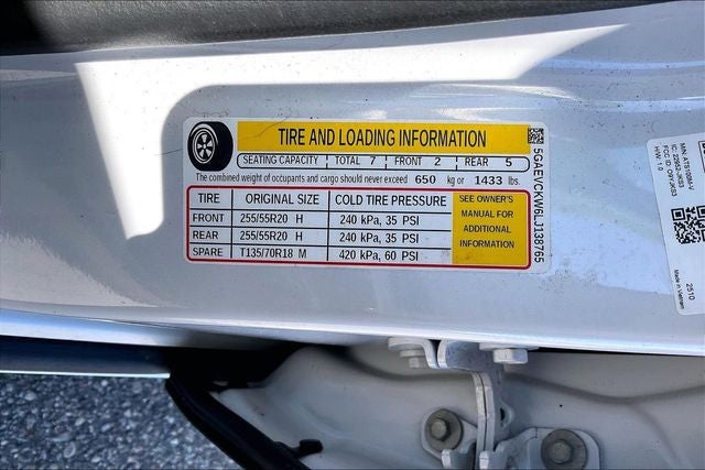 - Front Tire Size: P255/55R20