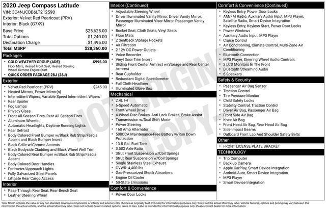 Discover the perfect blend of style, capability, and convenience with this 2020 Jeep Compass Latitude. This stunning Red SUV is ready to elevate your driving experience and take you on adventures near and far.