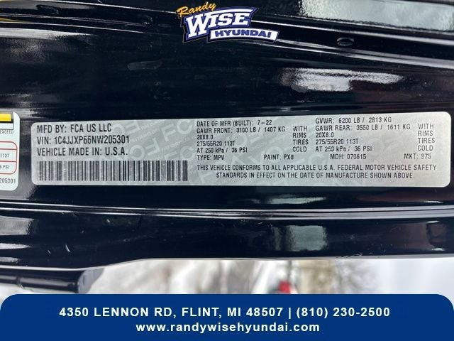 - Wheels: 20" x 8" Fully Painted Aluminum