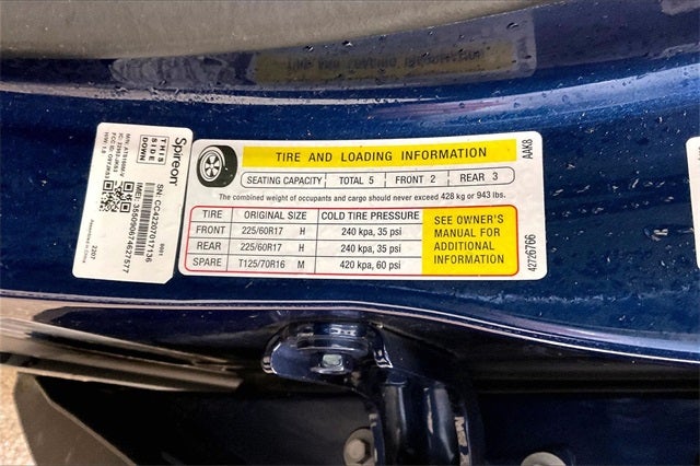- Tires, 225/60R17 all-season, blackwall