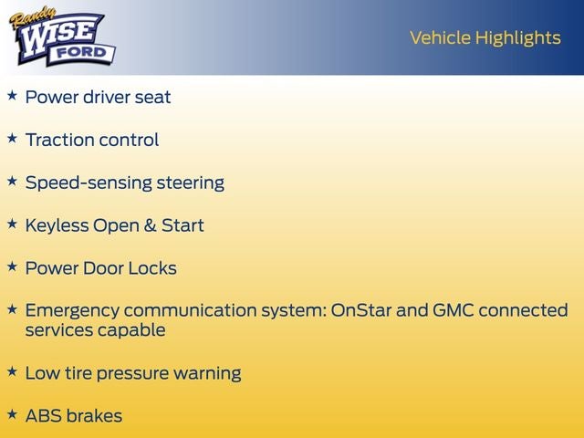 - Emergency communication system: OnStar and GMC connected services capable